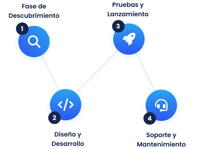 En cada etapa trabajamos de forma colaborativa para garantizar que tu proyecto avance con solidez y claridad. Desde la planificación hasta el soporte post-lanzamiento, nos enfocamos en entregar soluciones funcionales, escalables y alineadas con tus objetivos.